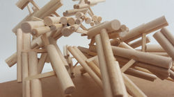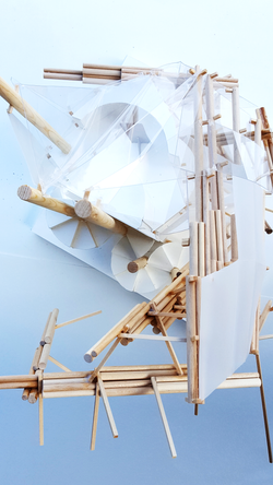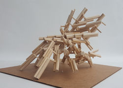 This project derived from a case study of Alvar Aalto's Villa Mairea. The modules in an aggregation study model- inspired by the bamboo stairs- were manipulated until they enclosed space. The vertical nature of bamboo is challenged and the result is an organic form. The bamboo is exploited in order to create an unconventional form.